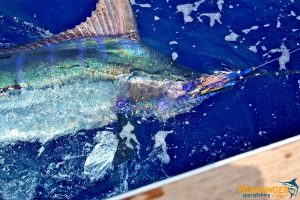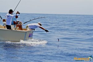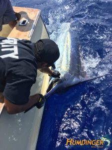 The fishing in Kona is consistent yet unpredictable. You never if you will catch something or how big it will be when you finally bring it alongside the boat. We love sharing our experience with our clients and its always so rewarding to see their faces when we bring a 300, 400, 500 pound or larger Marlin alongside the boat for a few pictures. Many of our guests have never been on a Sportfishing charter, or at the very least, they may have been on a deep-sea fishing charter or bottom fishing charter back in their home state. There is nothing that can quite describe the feeling one gets when a giant blue marlin connects on the end of your line. They say a picture is worth a thousand words…so we’ll just leave it at that. We hope you enjoy the show and check back often for an updated portfolio of Kona Fishing Pictures from the Humdinger.